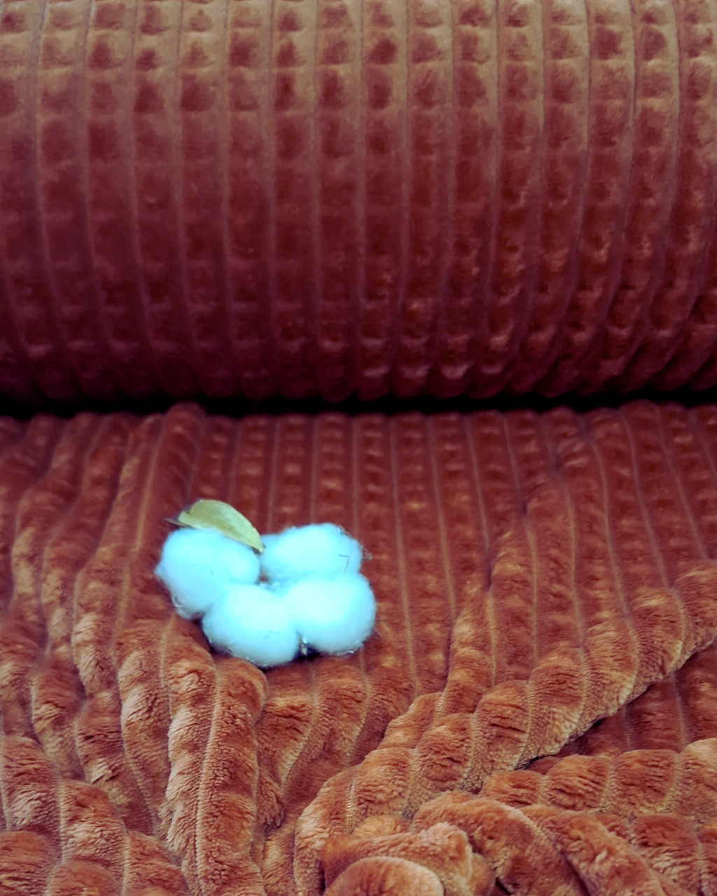 A Jacquard Léda egy különleges szövésű, exkluzív megjelenésű mikroszálas minky anyag, amelyet puhasága, eleganciája és texturált felülete tesz különlegessé. A szövési technológiának köszönhetően dombornyomott, bordázott mintázattal rendelkezik – ez nem nyomtatott, hanem a szövet szerkezetéből adódó mintázat.